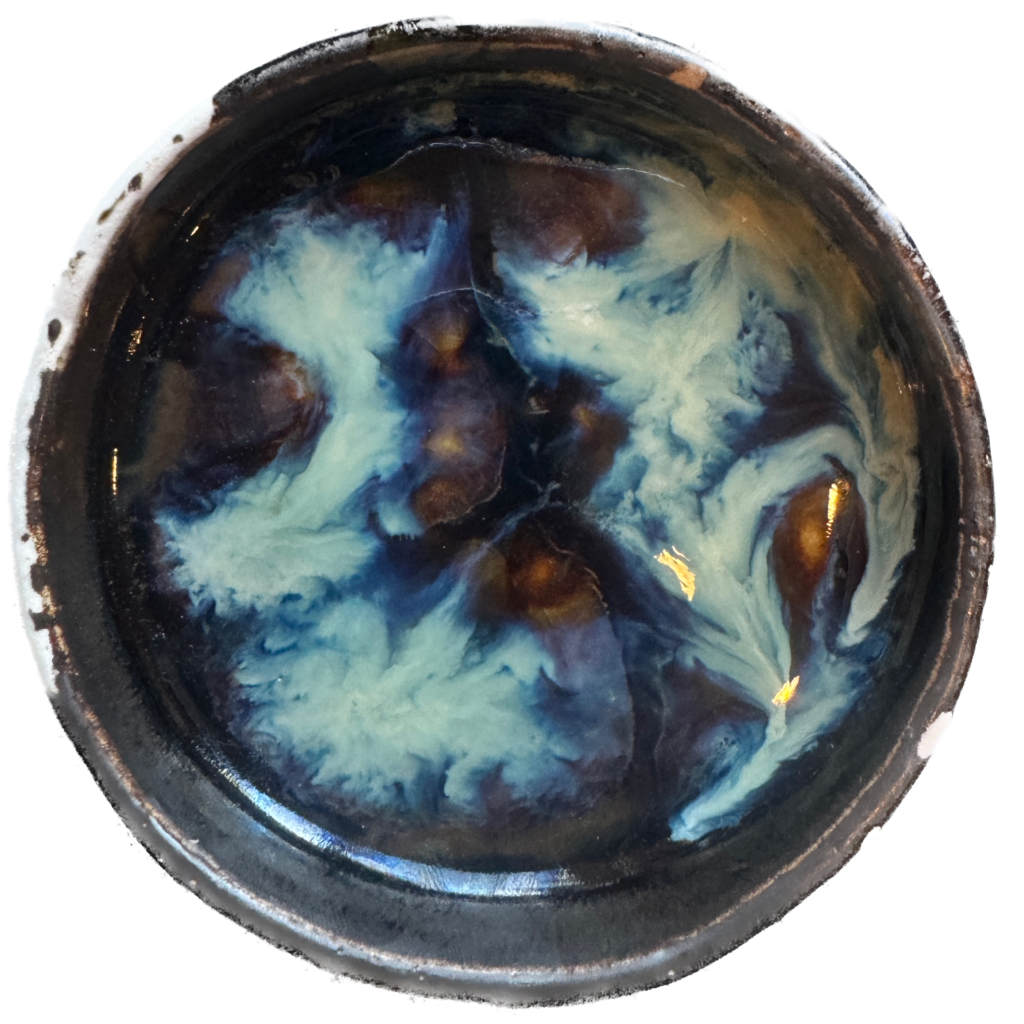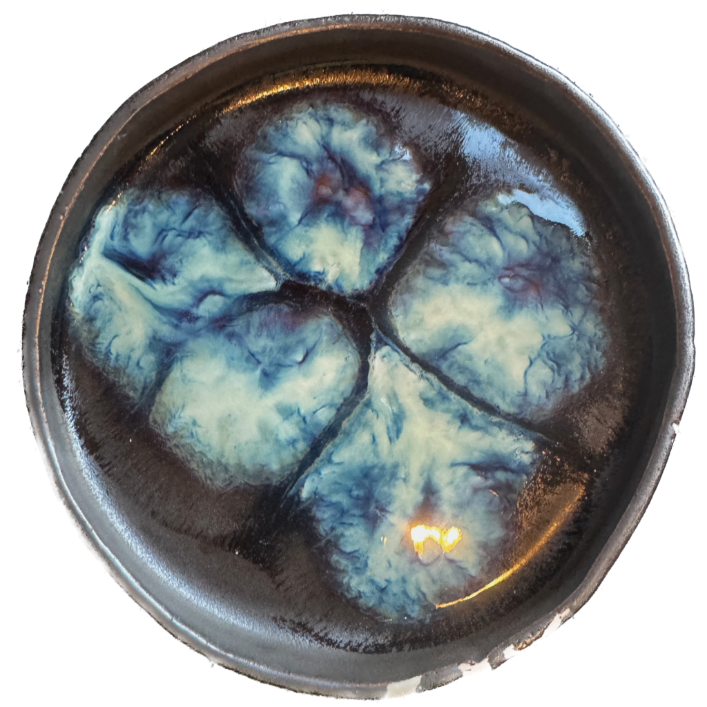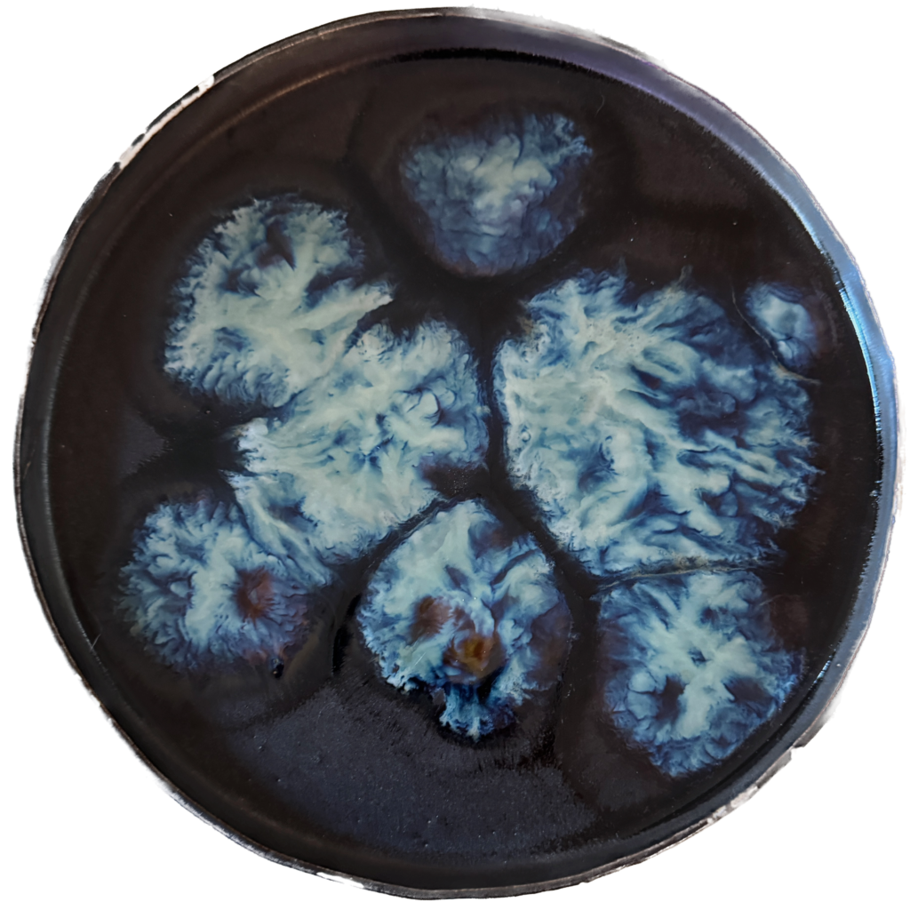 Frozen Pond Technique was invented by Kathy McGuire. It is a cool glazing technique that you can add to your piece. It looks like pools of water on a black background. It is a really cool technique.